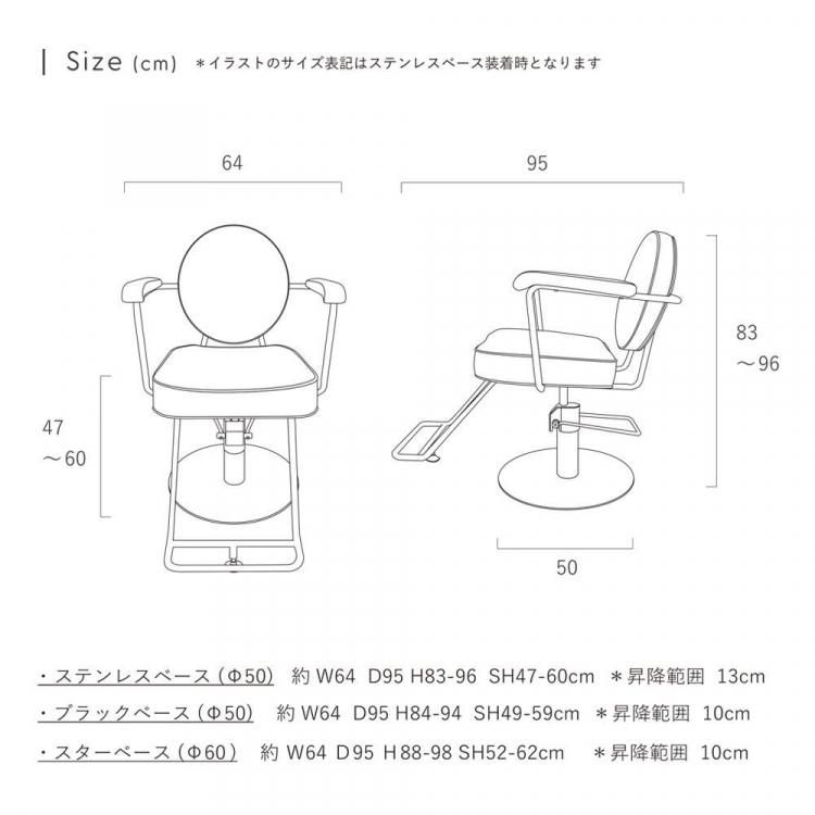 サイズ:約H840 - 940mm 約W640mm(ベース直径560mm) 約D950mm