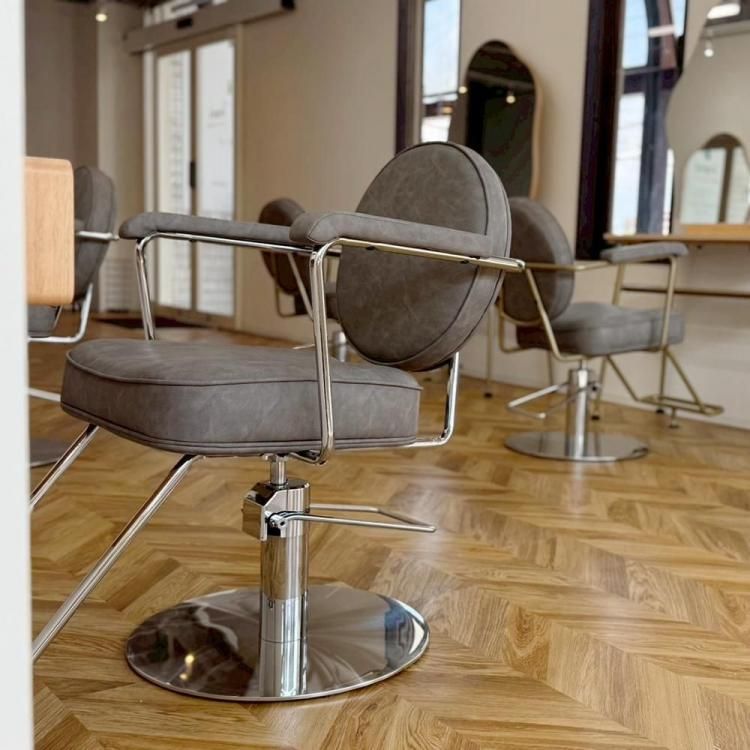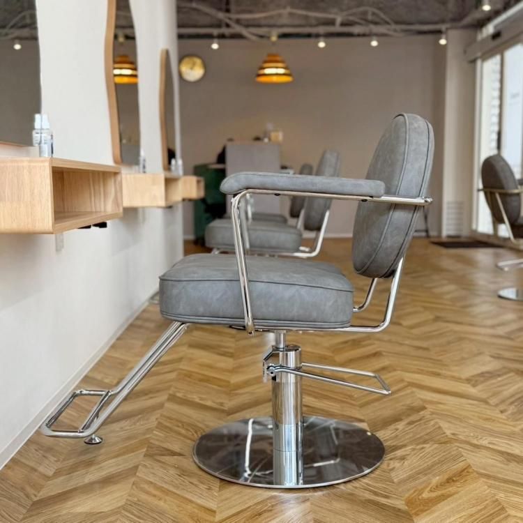 マットな質感のグレーのPUレザーはサロンの顔としても活躍します。
