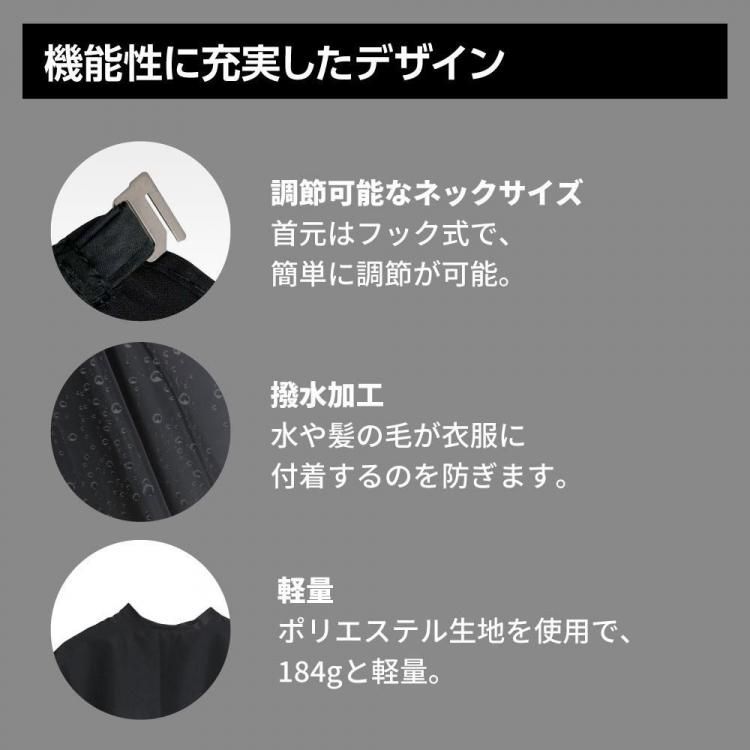 軽量で着脱が容易、かつ髪の毛の付着を防ぐ機能を持つ、静電気や水分にも配慮されたカットクロス。