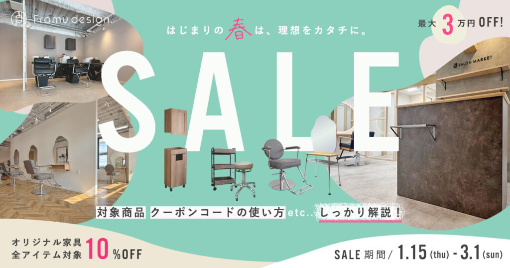 【最大3万円OFF!】美容室の新店立ち上げ・オープンにおすすめの業務用家具、サロンマーケットの開業応援セール2026