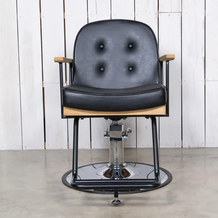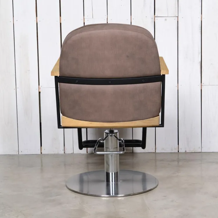 Framuとは異なる丸みを帯びた形と、クッションのボタン締め・パイピング仕上げが上品なスタイリングチェア。やわらかさと重厚感を兼ね備えた雰囲気は、ナチュラル系やアンティーク調のサロンにおすすめです。