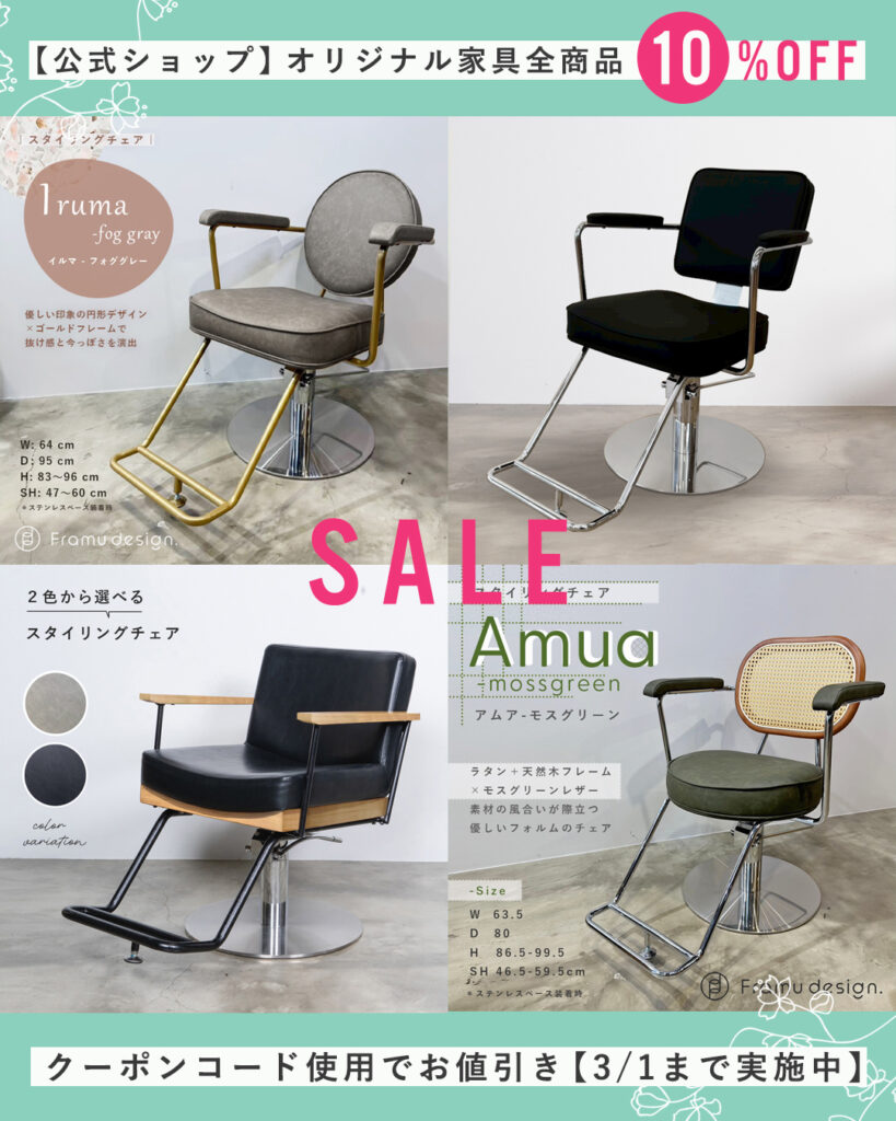 あの大人気スタイリングチェアがパワーアップして再登場。サロンマーケットオリジナル・『Framu』(フラム)、『Crel』(クレル)を徹底解剖!