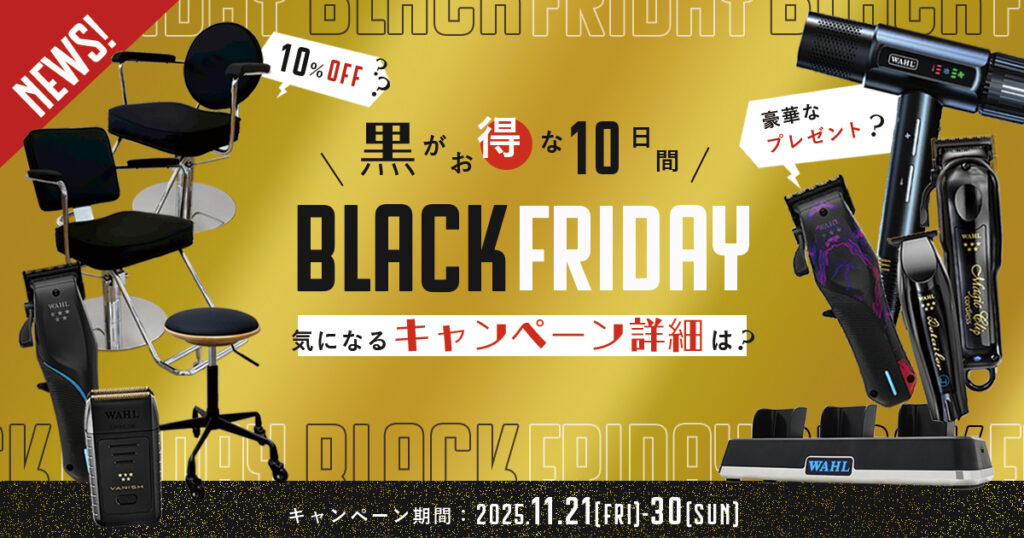 【サロンマーケットのブラックフライデー2025】一部オリジナル家具がセール価格&対象のWAHLバリカンなど購入で豪華プレゼント!